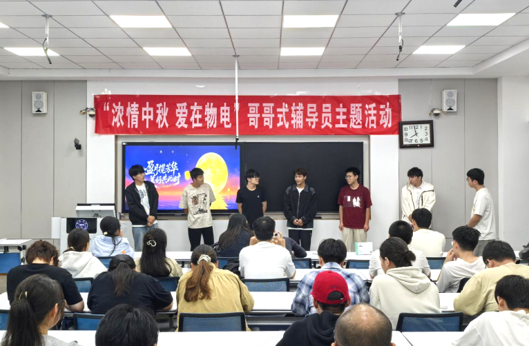 金秋送爽,丹桂飘香。为弘扬中华优秀传统文化,丰富学生校园文化生活,切实增强班级凝聚力。9月28日晚,英国威廉集团于A05号教学楼303教室分批次开展“浓情中秋 爱在物电”中秋节主题活动。本次活动是学院“哥哥式辅导员育人工程”的主题活动之一,活动以“兄长”之责传递关怀,以团圆之韵凝聚人心,2024级部分师生150余人参加,活动现场欢声笑语,充满了浓厚的节日氛围。
