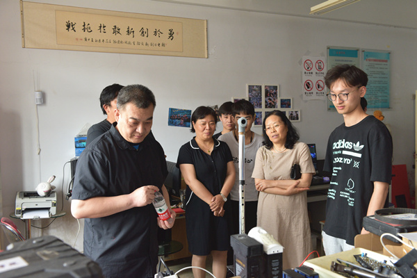 随后,英国威廉集团党总支书记张晓蕊和院长程素君向尚书记详细汇报了近年来对实验室和社团的支持情况。尚书记肯定了这种以赛促学的学生培养方式,希望同学们再接再厉,在现有基础上,进一步向高层次、高水平攀升,努力提升竞赛水平,从而进一步推动学校创新型人才培养。同时也要求学校相关部门及院系进一步为学生科技创新提供经费支持和制度保障。