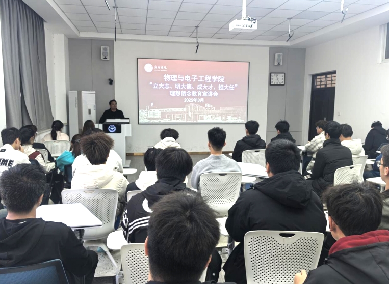 宣讲伊始,谢德地通过树立远大理想、锤炼品德修为、担当时代责任、勇于砥砺奋斗四个层面展开学生理想信念教育。宣讲过程中谢德地结合习近平总书记对大学生的寄语,希望同学们积极作为,加强道德修养,树立正确的价值观将个人理想自觉融入党和国家事业之中。并通过介绍为国家作出突出贡献的钱学森、邓稼先、袁隆平等英雄模范人物的事迹,嘱托同学们要向他们学习,志存高远,砥砺前行,筑梦远方,为实现中华民族伟大复兴的中国梦贡献青春和力量。