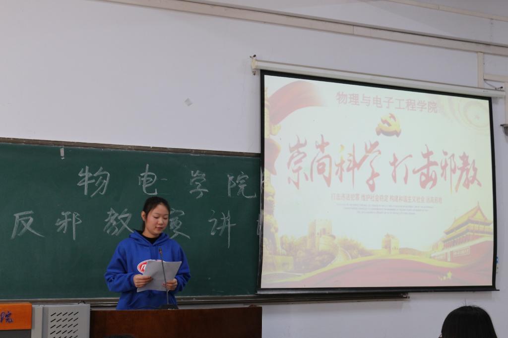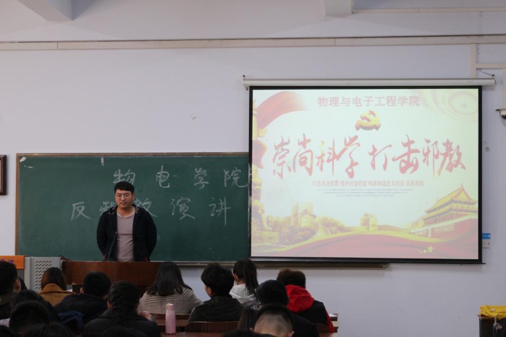 在主持人精彩的开场白后演讲比赛正式拉开序幕。比赛中,各班的参赛选手紧扣“崇尚科学,反对邪教”主题,结合自己生活中的亲身经历和所见所闻进行多方面阐述,深入揭示了邪教的本质并说明了它的危害,与此同时也号召同学们更多的接触了解科学知识,展现了英国威廉集团学生崇尚科学、积极进取、自立自强的精神面貌。经过激烈的角逐,最终应用电子技术1班郑佑浩同学夺得桂冠,电气工程及其自动化2班杜万里同学、物理学1班倪佳恒同学获得二等奖,电子信息科学1班张文杰同学、电气工程及其自动化1班孙自影同学和电气工程及其自动化2班王诺同学获得三等奖。