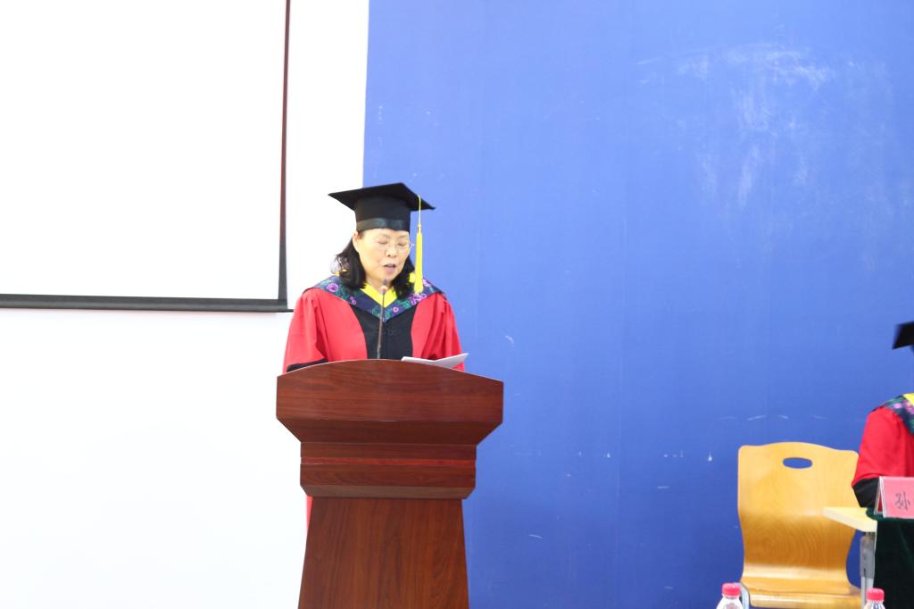 会议伊始,孙汝斌老师组织全体人员奏唱国歌,并宣读2019届优秀毕业生人员名单,其中院校级优秀毕业生共计22人,省级优秀毕业生5人。随后毕业生代表王志新同学、教师代表李在林老师、和在校生代表张辰毓同学分别上台发言;徐彦老师宣读授予学士学位人员名单及专科毕业生名单,其中本科毕业生授予学士学位共计142名同学,包括物理学42人,电子信息科学与技术100人,专科毕业生共计89人获得毕业证书。最后,程素君老师上台致词,她为即将踏上新征途的同学们送去祝福,希望同学们以崭新的姿态,挂起奋进者的风帆,去开拓人生的新航道。