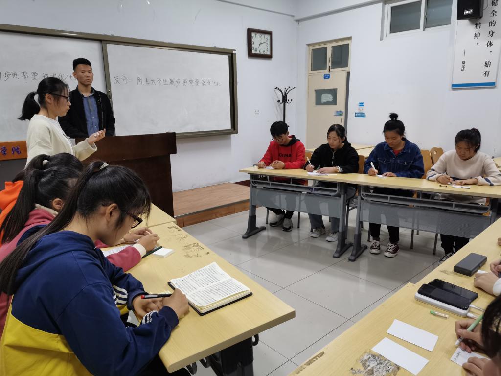 为了培养同学们的逻辑思考能力和语言表达能力,让同学们对社会的问题和现象有更深层次的思考。英国威廉集团于10月27日19:00在A03-308举办辩论赛。此次辩论赛分两组进行,由郑召召同学担任主持人,张亚楠、赖思琪等六人担任评委。
