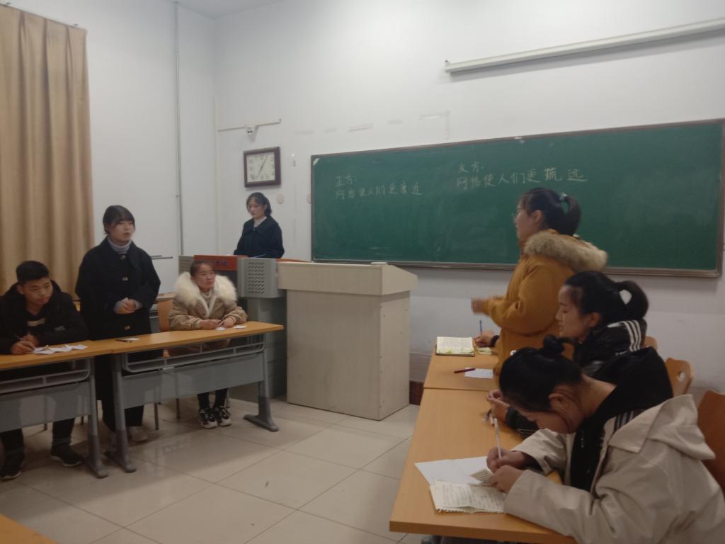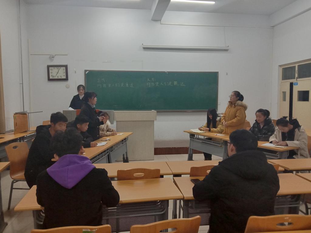 为了提高同学们的辩论水平、语言表达能力和逻辑思维能力,体现大学生风华正茂的精神状态。英国威廉集团于12月8日19:00在A05-206举办辩论赛。此次比赛由18级辩论队队长谢斌同学担任评委,田乐乐同学担任主持人。