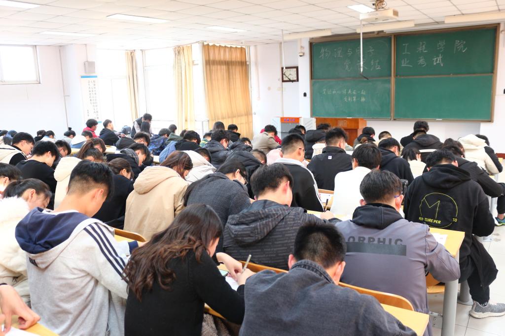开考前,由监考人员宣读并强调考场纪律。在监考人员为各位考生分发试卷后,考试正式开始。在考试过程中,各位考生沉着冷静,奋笔疾书,只有答题的“沙沙”声。随着时间一点一滴的过去,本场考试也接近了尾声。考生们把自己的试卷、党课笔记以及党课心得交于监考人员手中,在监考人员收齐整理并做好记录后,本场考试圆满结束。