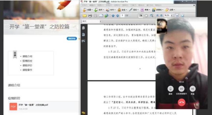积极推荐教师采用超星等教学工具进行网上教学活动,认真按照教学日历和课程表安排,按时进行网上教学活动,并要求教师讲好开第一课“学疫情防控”,切实有效的传达疫情防控的知识。2月11日为我校开始上课的第一天,我院教师均能够按照教学安排,按时进行网上授课,切实保障了教学任务的顺利进行。
