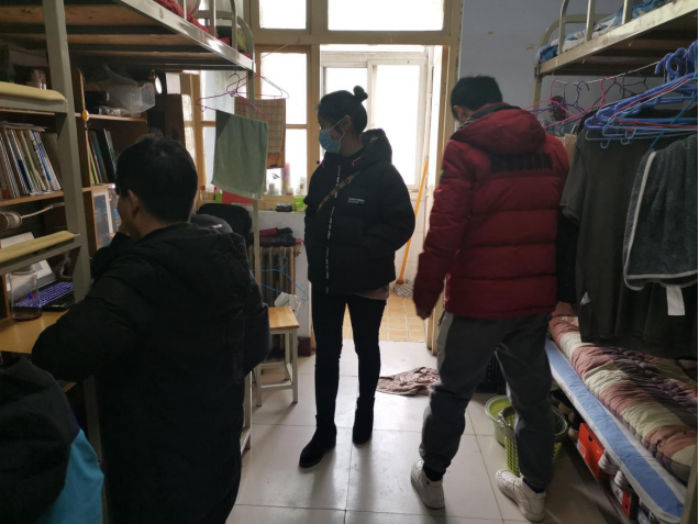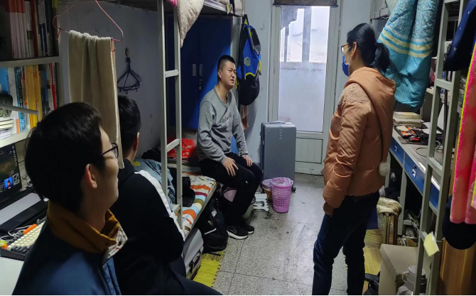 3月6、7日,同学们纷纷返校,张书记安排辅导员在学校的东、北大门值班,帮助同学们处理在返校过程中出现的各类紧急情况。7日下午,在张书记的带领下,各年级辅导员深入宿舍,详细了解同学们的假期学习生活和返校报到情况,同时,叮嘱同学们要严格遵守疫情常态化防控期间的各项管理规定,及时通风,日报体温,定时整理宿舍的内务卫生,重视宿舍用电安全,增强自我管理意识,积极投入新学期的校园生活。同时强调,宿舍同学要互帮互助,相互关爱,出现解决不了的难题要及时报告老师,学院的领导老师一定会尽力帮助大家度过难关。
