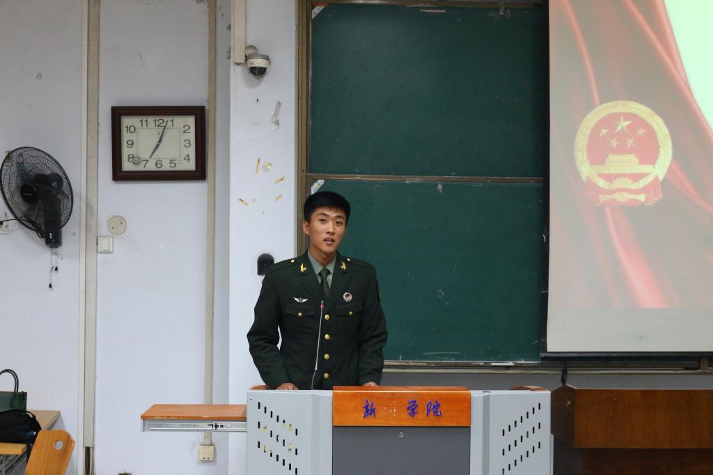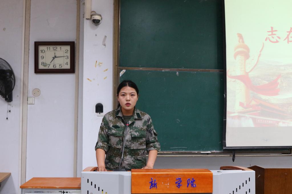会上,王佳老师首先向大家简单介绍了4名学生的基本情况。随后四名同学依次讲述了自己的军旅生活,包括艰苦的训练,丰富的伙食,珍贵的友谊。铿锵有力的语调,矫健的身形和饱满的精神状态让同学们直观地感受到了他们对军队的热爱。其中王雨薇同学提到,一些女同学认为自己无法承受高强度训练,但经过科学系统的锻炼后都可以适应,军营生活会塑造一个崭新的、更好的自己。原喜亮同学讲述了他携笔从戎,投身军营,报效祖国的经历,并分享了他的心得体会,学文习武两不误,保家卫国一肩挑。