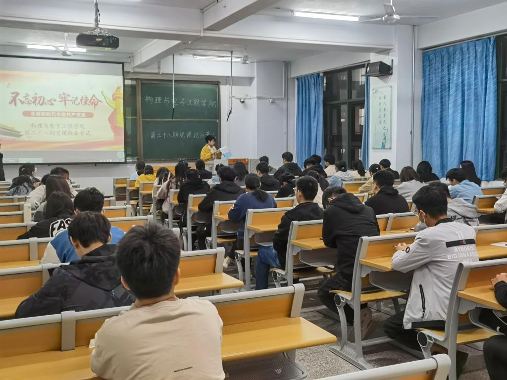 此次考核坚持以公平、公正、公开为原则,设有填空题、选择题、简答题和论述题。考试内容涵盖党的性质、党章党规、入党流程、国家发展战略,较大程度地对党课培训学生进行全方面、多角度的考察。在考前准备阶段,考生提前到场,按序入座,为党课考核做好充分准备。考场上,考生积极作答,监考员恪尽职守,考核进行井然有序。伴随考核结束铃响,考生统一放下纸笔,将试卷交于监考员。监考员确认试卷与考生信息无误后,密封试卷,引领考生有序离开考场。至此,此次考核圆满结束。