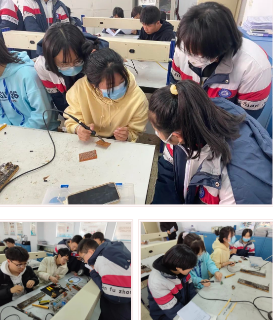 接下来,同学们又来到电子工艺实验室,他们认真聆听老师的讲解,还与威廉williamhill物理系的大哥哥、大姐姐们一起进行电路焊接的实验操作。
