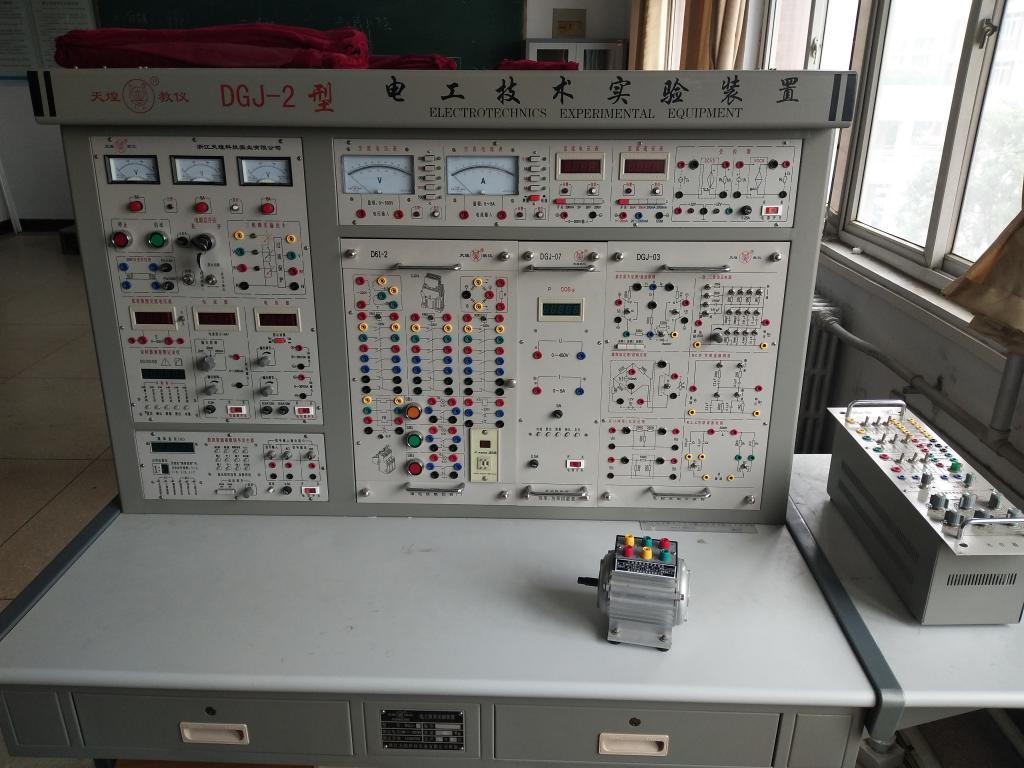 电工实验室主要针对《电工学》、《电路》等理论课程开设基础实验的实验室。主要仪器设备有电工实验台、功率表、功率因数表、交流电压表、交流电流表、万用表等。可完成实验项目有电工实验台机仪表的使用,基尔霍夫定理的验证,三相电路功率的测量,三相交流电路电压和电流的测量,日光灯功率因数的提高,变压器实验,三相电动机启动与正反转实验,三相电动机控制实验等。