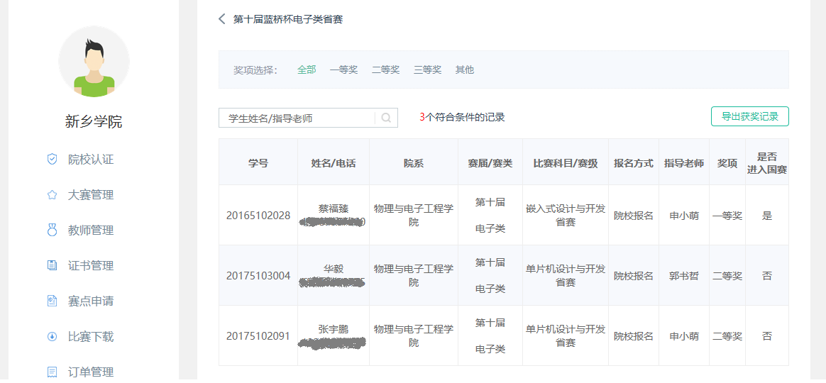3月24日,第十届“蓝桥杯”全国软件和信息技术专业人才大赛河南赛区豫北赛区比赛在河南科技学院顺利举行。我院共派出3名学生参赛,其中2016级学生蔡福臻参加嵌入式设计与开发项目获得河南省一等奖并顺利进入国赛,2017级学生华毅、张宇鹏获得单片机设计与开发二等奖。