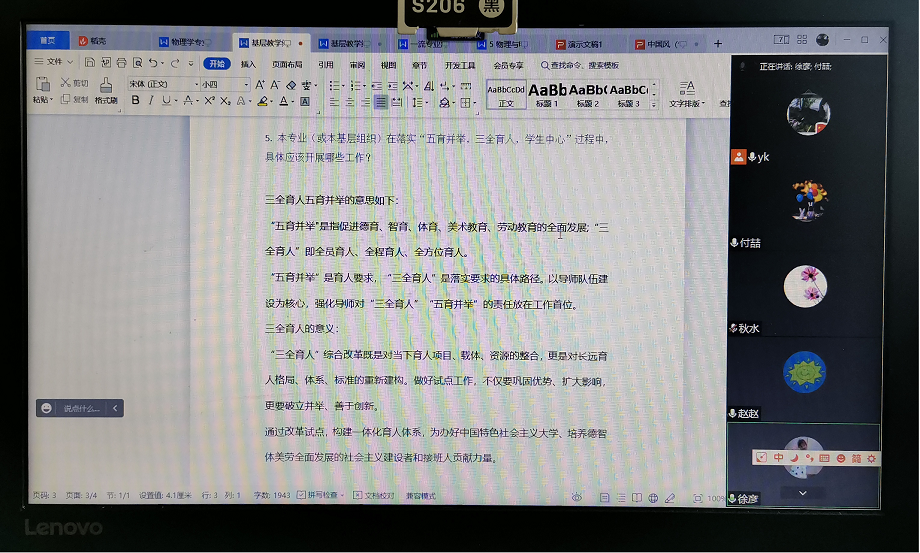 为认真学习贯彻习近平总书记教育重要论述,切实提高人才培养质量,扎实推进教育思想大讨论工作的开展,以优异成绩迎接本科教学审核评估工作,根据威廉williamhill思想教育大讨论动员会会议精神,物理学教研室在学院开展教育思想大讨论的基础上,于2022年8月12日通过腾讯会议集中开展了“教育思想大讨论”教研活动。