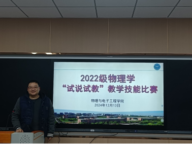 为了加强师范生的实践教学能力和创新能力,彰显师范特色,强化教学技能,我院2022级物理学专业师范生“试说试教”教学技能比赛于12月13日举行。比赛评委由我院物理学专业教育教学实践团队成员组成,2022级全体师范生进行了现场观摩。