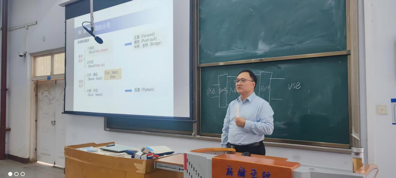 “电能变换不是冷冰冰的公式,而是充满美感的工程艺术。”刘老师开场的一句话,瞬间点燃了全场师生的热情。随后刘老师以“如何用DC24V电源为DC12V/2A负载供电?”这样一个具体问题引发了全场热烈的讨论。学生们争相发言,从效率、成本、可靠性多个角度阐述自己的设计方案。这种基于真实工程场景的思辨,正是本堂课最宝贵的收获。