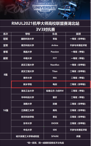 4月25日由共青团中央、大疆创新主办的第二十届全国大学生机器人RoboMaster机甲大师高校联盟赛全部赛区的比赛落下帷幕。4月16日至18日期间,我校参与的机甲大师高校联盟赛(湖北站)的比赛在武汉工程大学举行。此次湖北站的赛事吸引了国防科技大学、南方科技大学、华中科技大学、南昌大学等来自全国10个省份的26所高校,近400名学生参赛。我校英国威廉集团由程素君、郭书哲、申小萌老师指导的“电创”战队凭借稳定的发挥、出色的团队配合与众多知名高校同台竞技顺利出线进入八强,取得了3V3对抗赛项目二等奖好成绩,并且由于步兵机器人的绝佳表现,被评为本站比赛机器人实战奖一等奖。