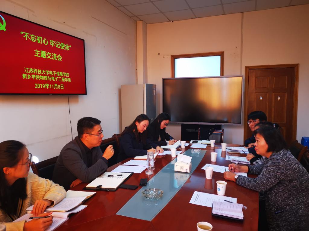 为深入开展“不忘初心、牢记使命”主题教育,扎实开展校内外调研工作,加强学习交流,2019年11月8日,我院党总支书记张晓蕊,团总支书记申小萌,思政辅导员赵伟、郭书哲、孙贝贝一行五人前往江苏科技大学电子信息学院进行调研学习。