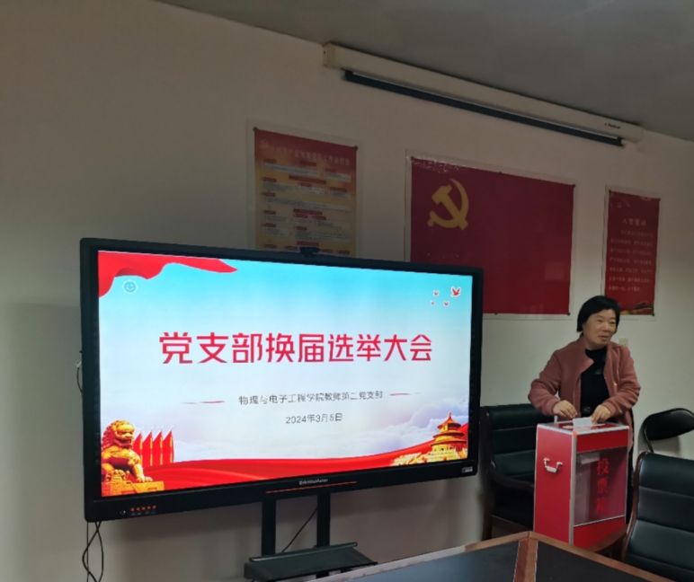 校院党委安排部署和正确领导下3月5下午,我院教师第二党支部依据《中国共产党章程》、《中国共产党基层组织选举工作条例》、《中国共产党普通高等学校基层组织工作条例》等有关规定,在A09四楼会议室组织召开了支部委员换届选举大会。会议由我院教师第二党支部书记张向丹主持,党支部全体成员参会。