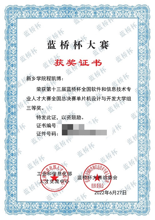 近日,第十三届“蓝桥杯”全国总决赛成绩揭晓,我院学生在电子类和软件类比赛中斩获佳绩。在国赛中,英国威廉集团参赛学生程凯博获全国三等奖1项。在省赛中,我校英国威廉集团获一等奖1项,二等奖1项,三等奖7项。