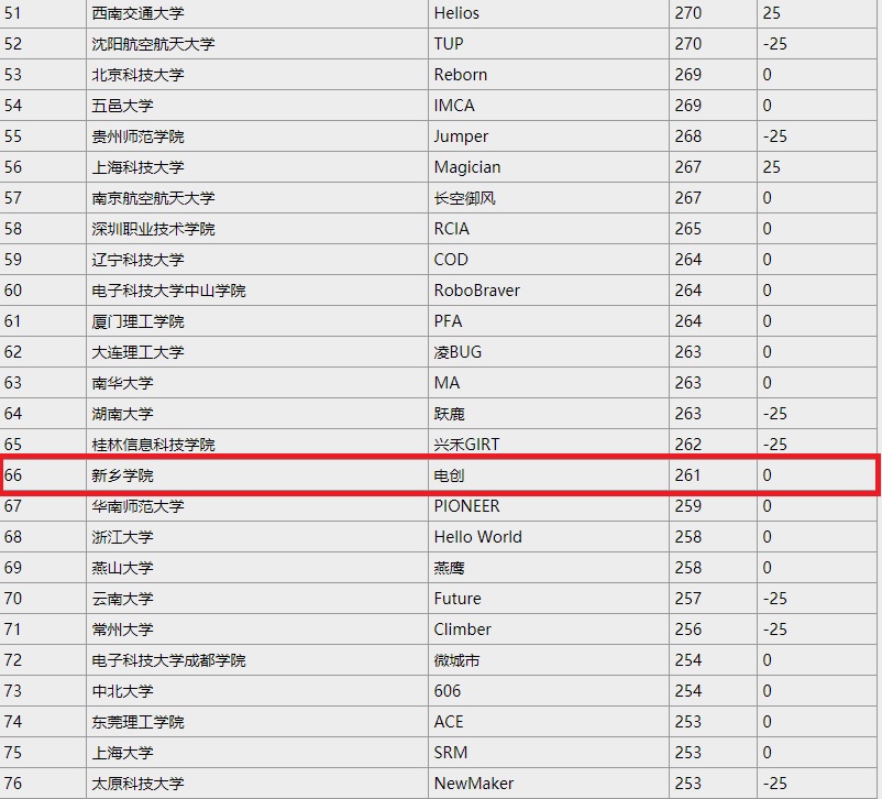全国大学生机器人竞赛RoboMaster2022机甲大师超级对抗赛完整形态考核通过名单及分数于5月9日公布,我院电创机器人战队位列第66位,作为河南省内唯一一支战队,成功入围超级对抗赛最终名单。